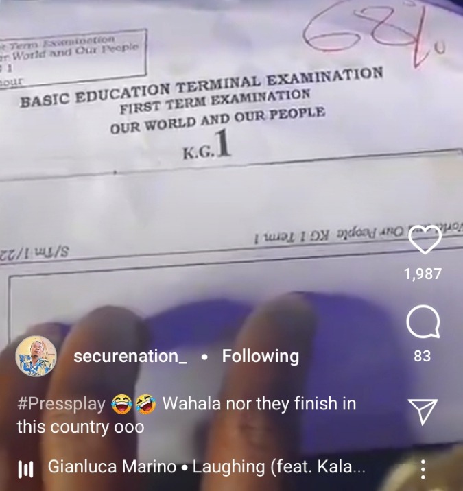 A young lady has posted examination questions set for Kindergarten children on social media and this has got people laughing. This is the first term examination paper for pupils in K.G 1 and the answers provided by a child are so funny. The name of the subject is ‘Our World Our People’ and according to the lady who posted this video online, the questions are above the standard of children in K.G 1.