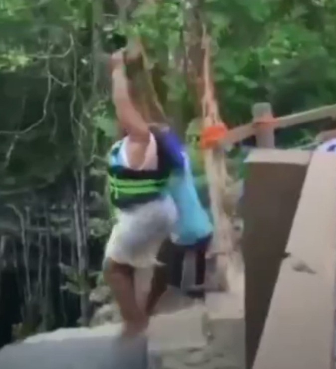 A man who is supposed to assist a lady slide across a river has mistakenly made her fall into a river. Watching the video carefully, you can see that the guy has secured the rope across the river very well. And he was preparing to help this lady cross the river. Not knowing the lady has not held unto the rope proper.