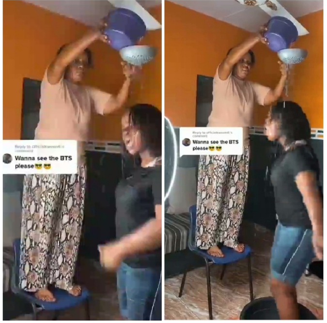 The mother was seen pouring water on the daughter as she was passionately singing Black Sherif's song. Some Ghanaians after coming across this said that the mother understood the assignment very well. How she was serious in the video shows that she knows what they are going to get from that video.
