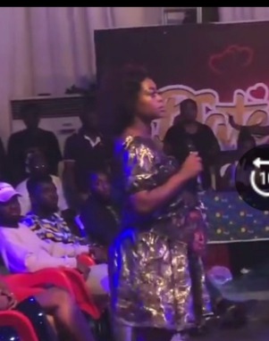 The host of the program, Giovani Caleb gave the wife a microphone to tell the audience her mission at the show. The lady introduced herself that she is called Mrs. Mabel Gyeiwaa Boamah, the wife of ‘2 Sure’ who is now looking for new love on Date Rush. The people at the program started shouting and making noise.